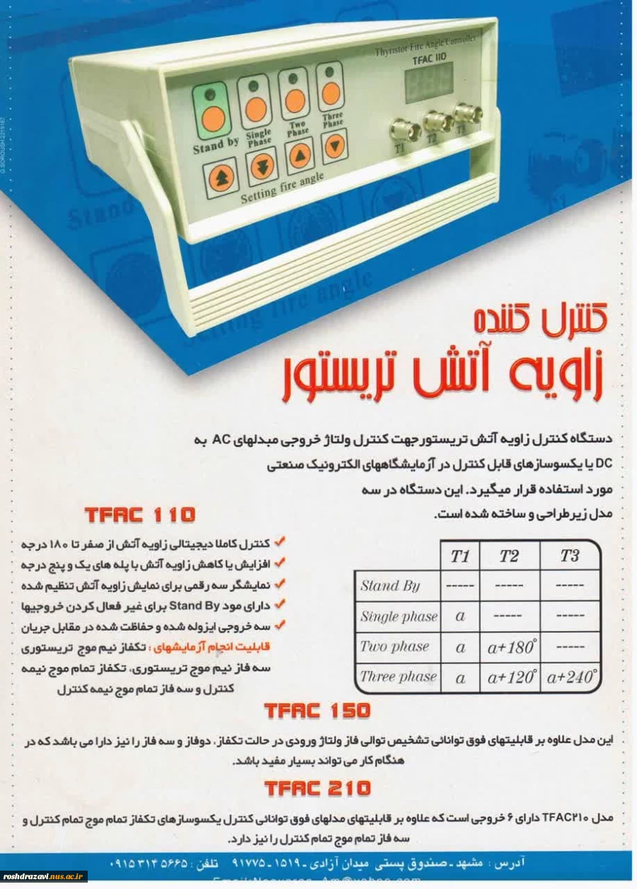 بروشور دستگاه کنترل زاویه آنش تریستور